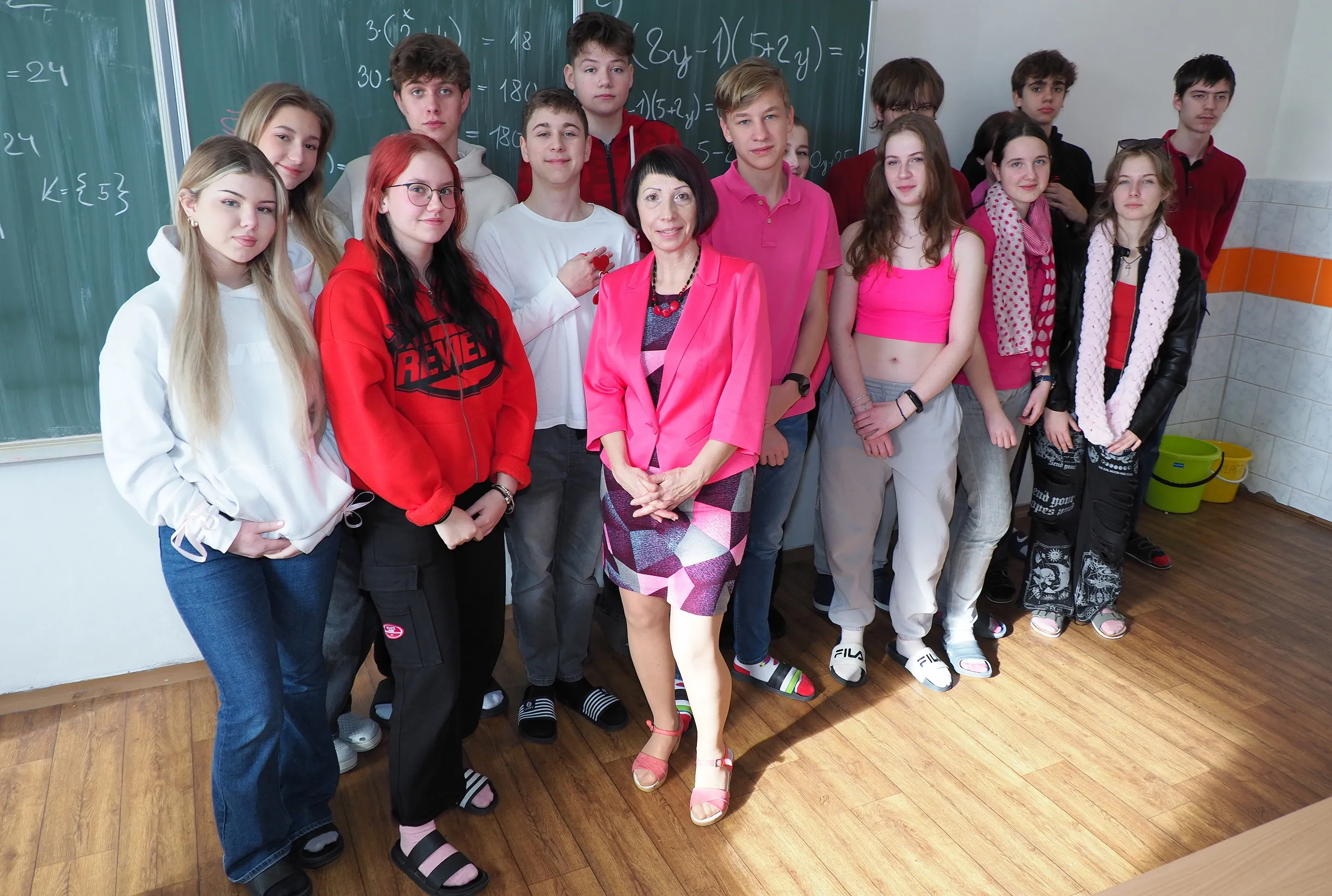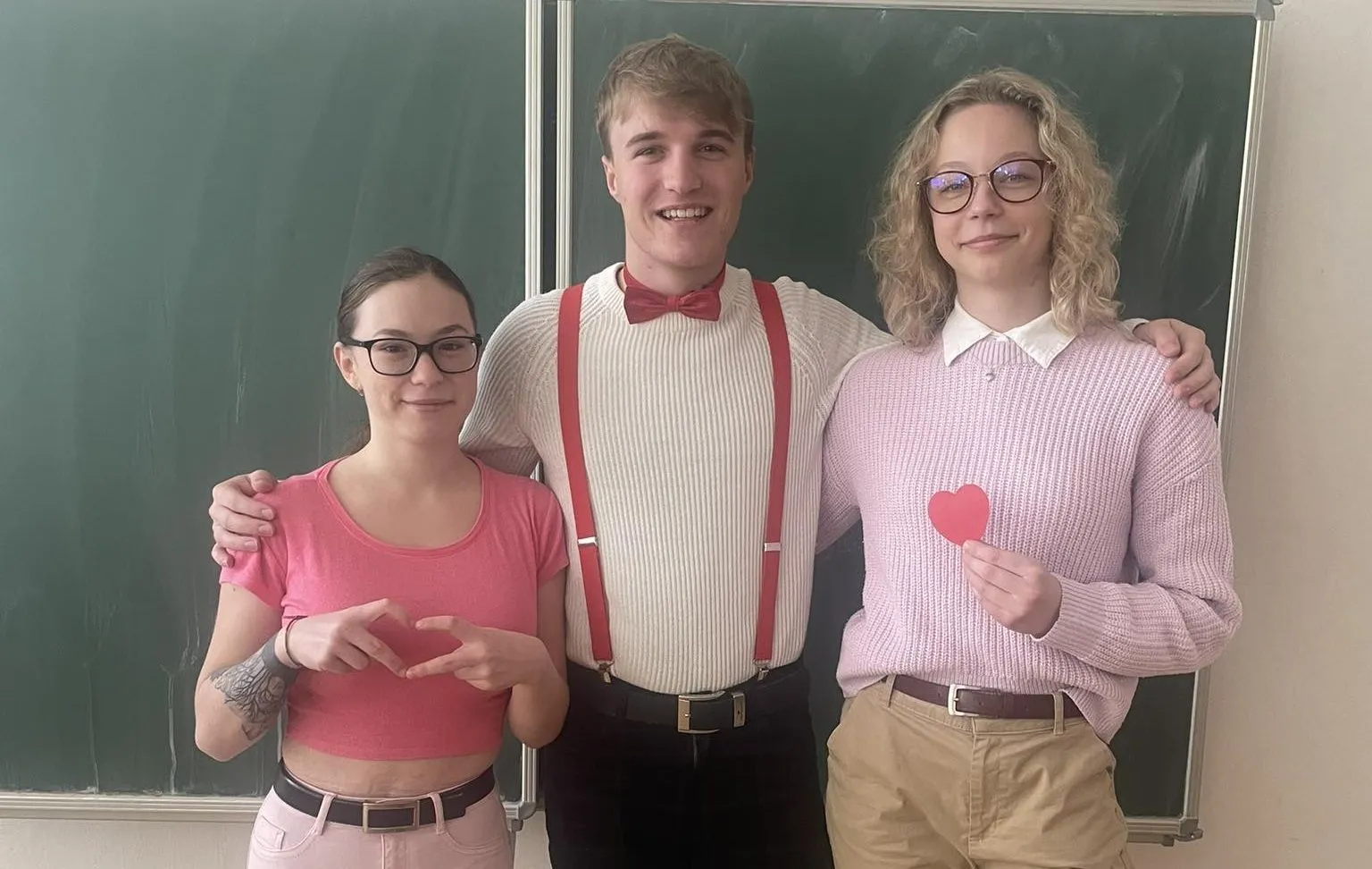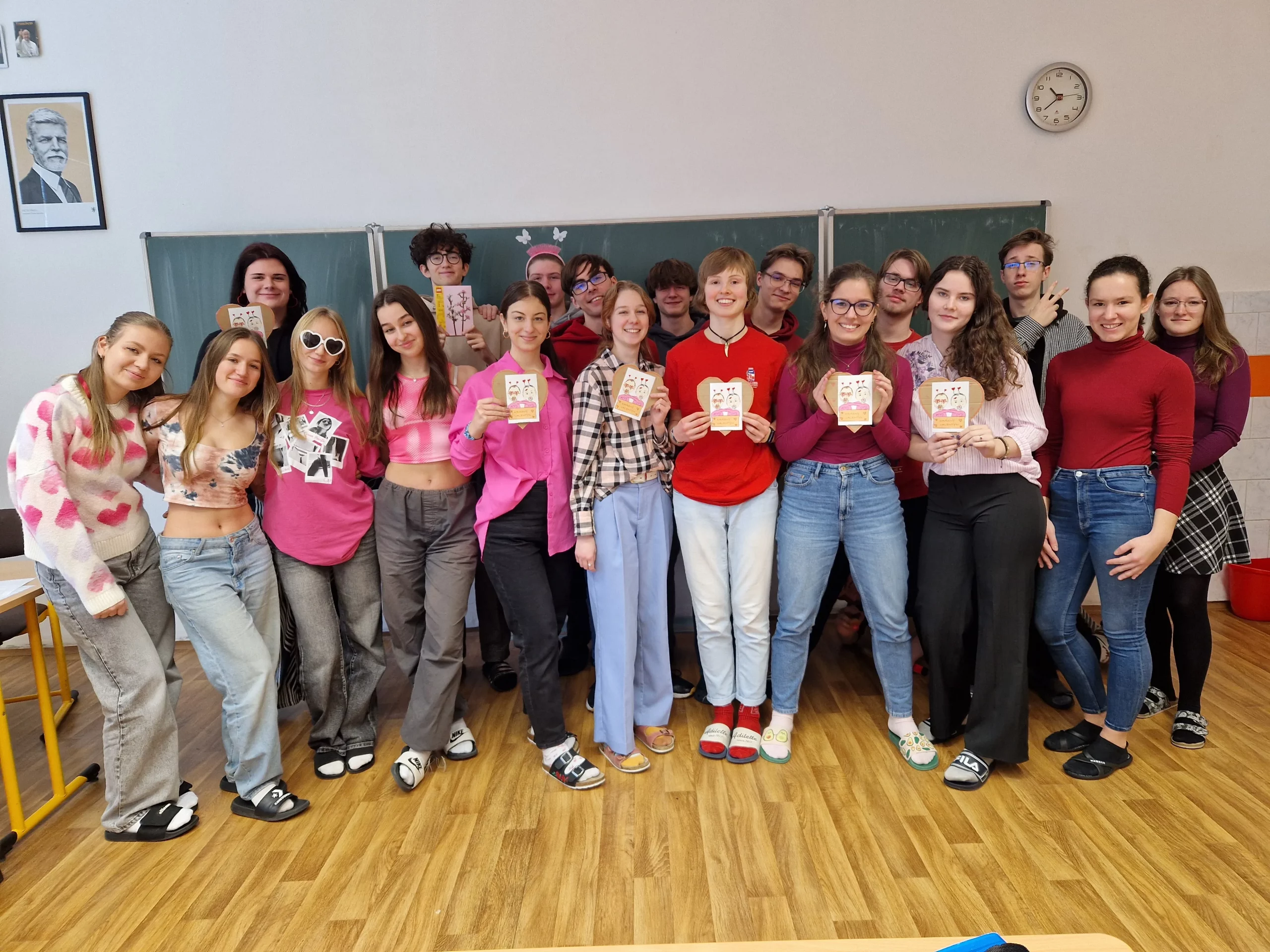 Růžová, červená, srdce, kam se podíváš… Takový byl Valentýn u nás ve škole. Dnes ještě pošťák David roznesl po třídách valentýnky, a potěšil tak nejednu duši.