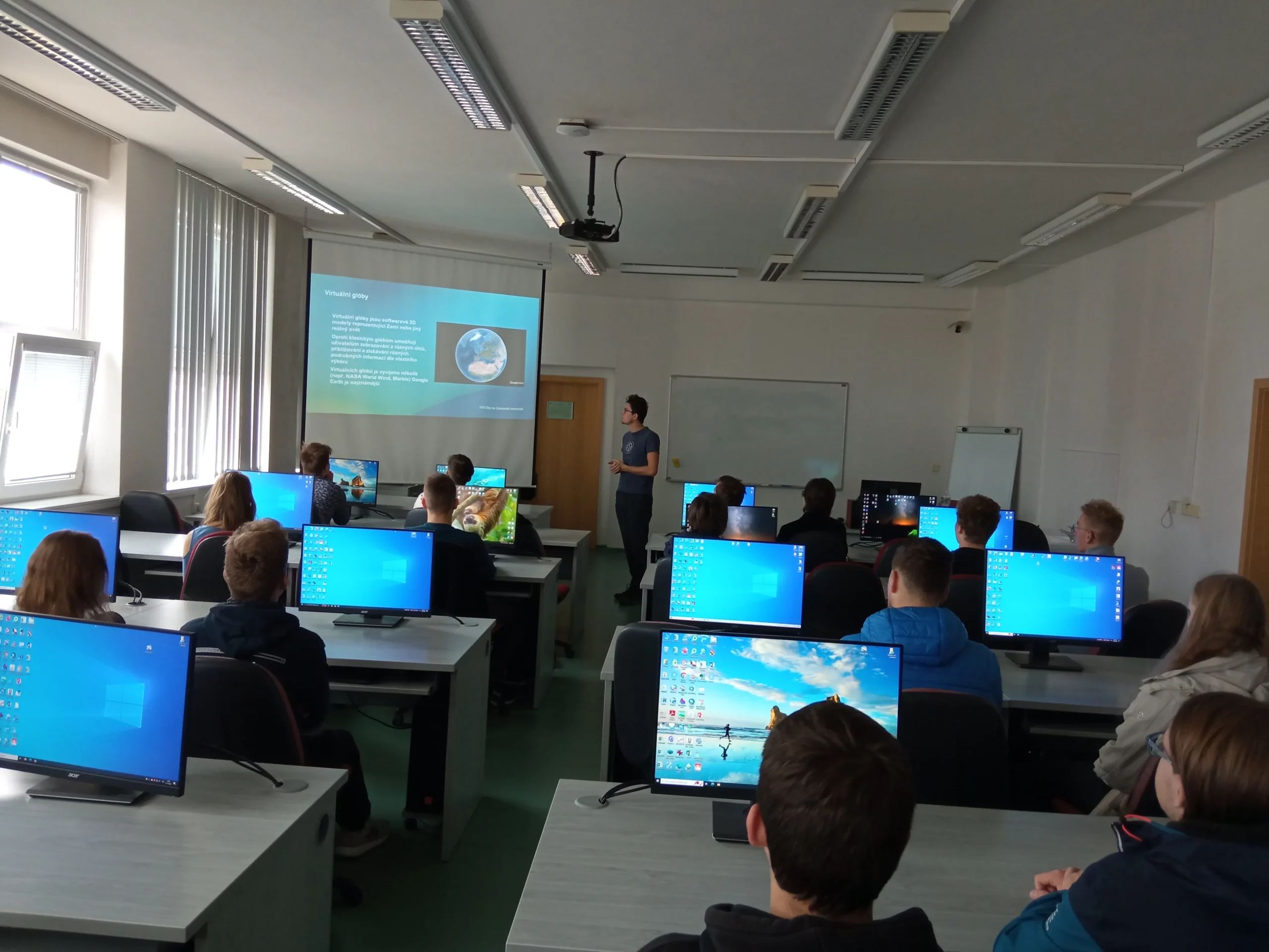 Dne 21. 10. 2022 se 3. G a 4. G zúčastnily exkurze na Přírodovědeckou fakultu Ostravské univerzity, přesněji katedru fyzické geografie a geoekologie. Studenti měli možnost si vyzkoušet mimo jiné i programy QGIS, Google Earth Pro a další. Součástí exkurze byla i úvodní přednáška, která studenty seznámila s významem a původem „GIS dne“, stručně představila obor a popsala také jeho vliv na každodenní život. Geografie a geoekologie totiž zkoumá např. lesy napadené škůdci, výpočty kubatur, různé přírodní katastrofy, ale i stárnutí a geologické změny naší planety Země. Nakonec se naši studenti zapojili do kvízové soutěže na téma Země a kartografie. Snažili se pilně a momentálně čekají na vyhodnocení výsledků.