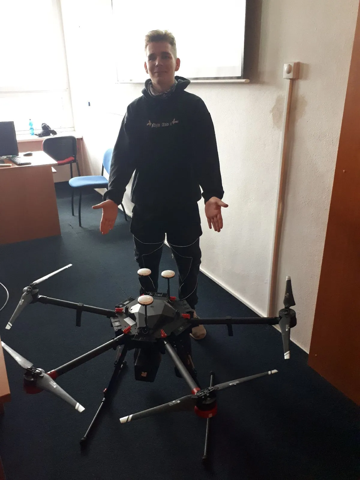 Potom přišla na řadu praktická cvičení na digitální modely reliéfu. Vyzkoušeli jsme si třeba analýzy viditelnosti výškopisu v geoprohlížeči. Také jsme si na příkladu nádrže Nové Heřmínovy zkusili určit nadmořskou výšku hladiny vody v nádrži a vypočítat objem vody. Práce se softwarem ARCGIS PRO byla pro nás nová a zajímavá. V poslední části naší návštěvy pan docent přinesl drony, aby nám je předvedl a seznámil nás s možnostmi jejich využití.