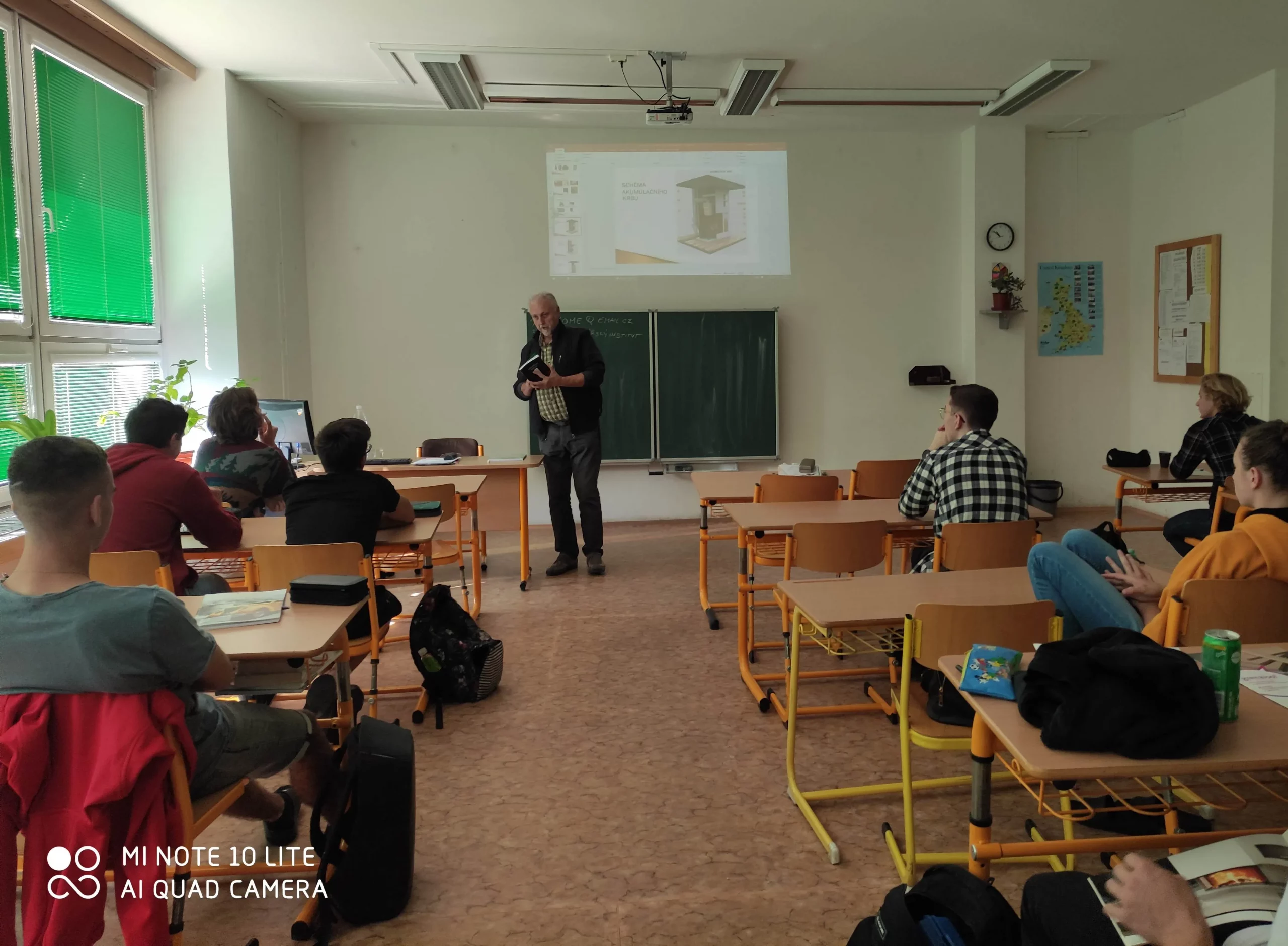 V rámci navázání spolupráce s Českým kamnářským institutem byla pro studenty 3. ročníků oboru stavebnictví připravena odborná přednáška na téma „Navrhování krbů a kamen“. Přednášející Ing. Antonín Šimáček studentům představil obor kamnářství jako zajímavé a dynamicky se rozvíjející odvětví, které navazuje na tradiční řemeslo, ale současně musí respektovat náročné požadavky dnešní výstavby v oblasti legislativy, konstrukčních řešení i designového vzhledu.