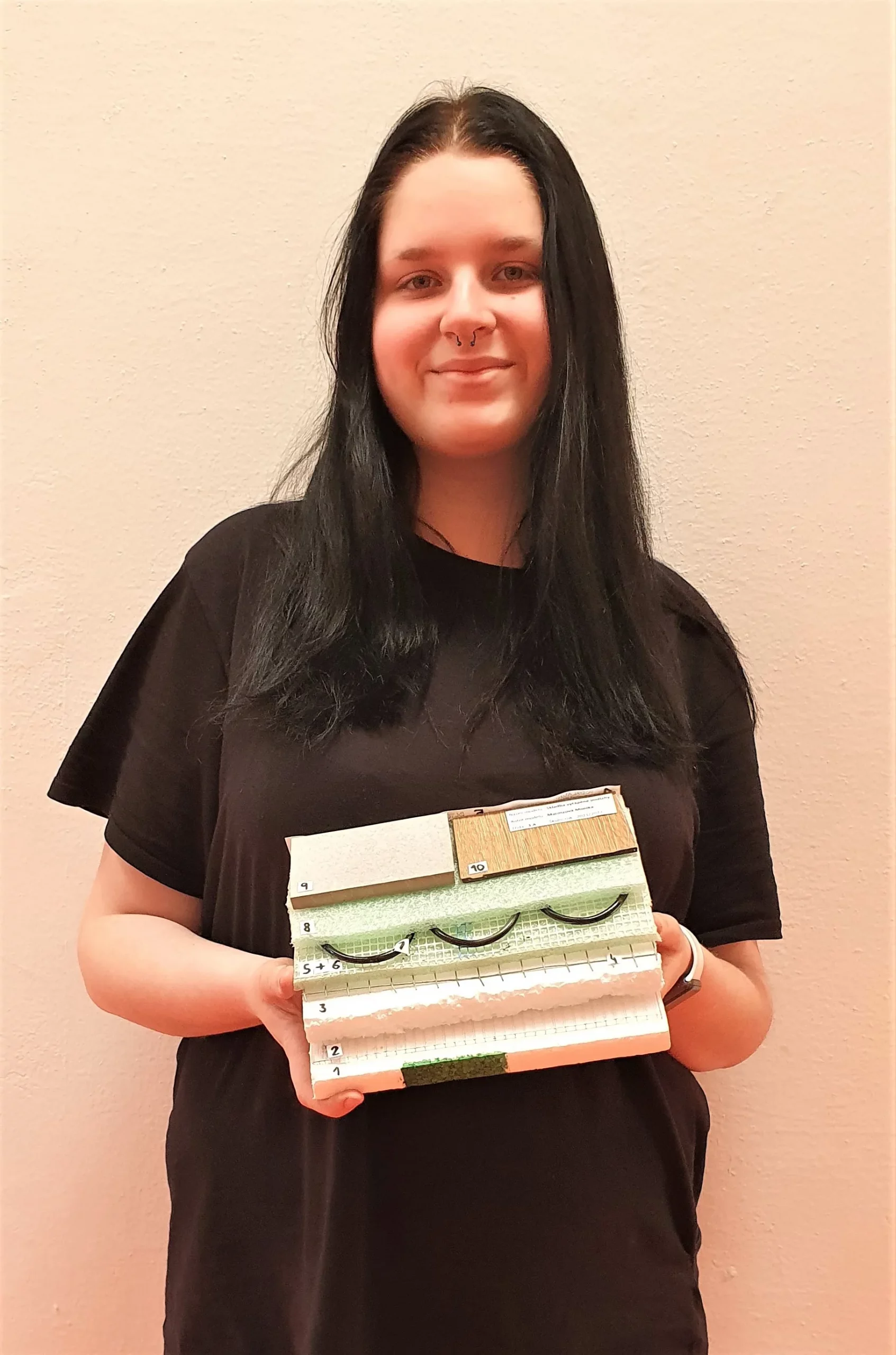 Porota, složená z členů pedagogického sboru, vybrala na stupně vítězů tři nejlepší práce. Bronzovou příčku obsadila Růžena Mackovíková s modelem vegetační ploché střechy, stříbro získala Monika Maroszová za model podlahového vytápění a porotu nejvíce oslnil model betonové krytiny Zuzany Vlodarské.