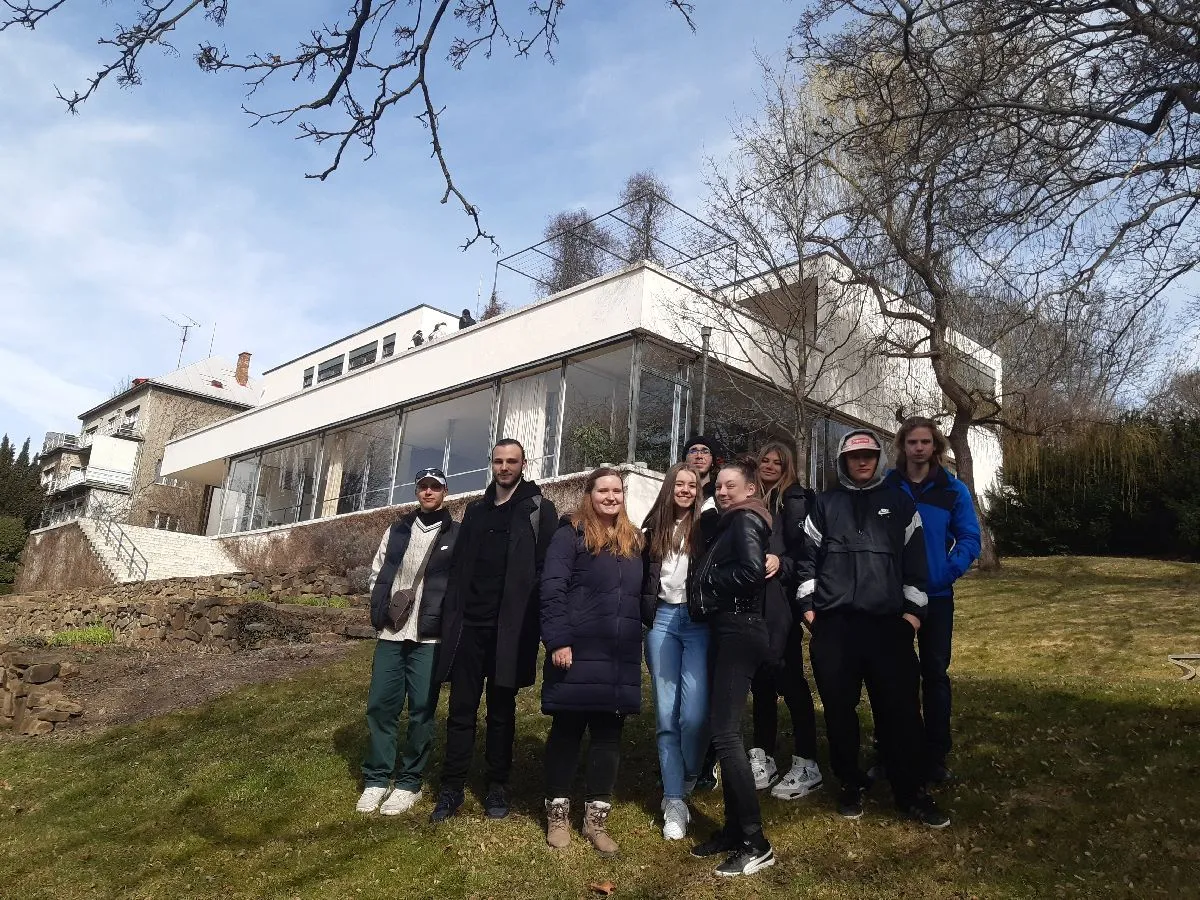 V polovině března se vypravily třídy 3. A a 3. L do Brna, aby si prohlédly interiér a exteriér vily Tugendhat. Vstávání nebylo zrovna nejpříjemnější (vlak vyjížděl v 5:52), ale stálo to za to! Prohlídka s výkladem zapáleného průvodce Patrika byla úžasná, vila samotná ještě lepší. Následný oběd už takových kvalit nedosahoval, nicméně procházka centrem Brna byla fajn.