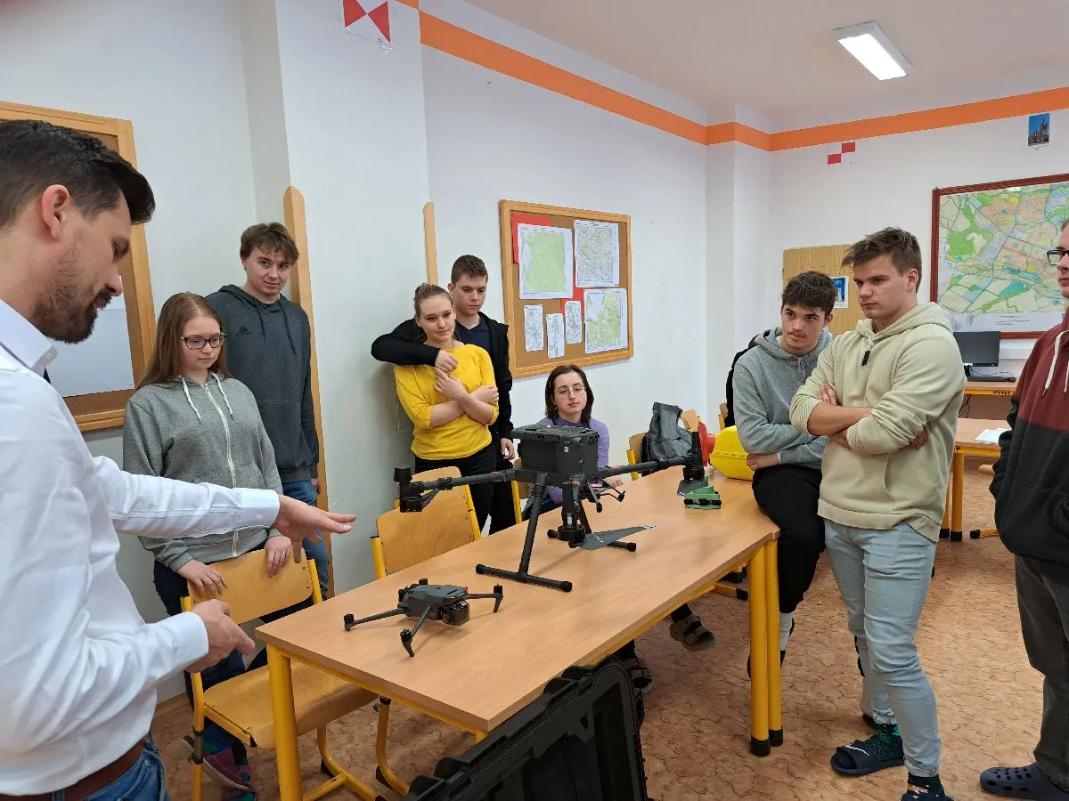Ing. Pavel Bozděch z firmy 3gon nám v geodetické praxi představil nejmodernější technologie. Mohli jsme si zkusit vyrobit 3D model příjezdové cesty do naší školy pomocí mobilního telefonu. Ukázal nám jedny z nejlepších dronů, přístrojů a příslušenství na geodetickém trhu.